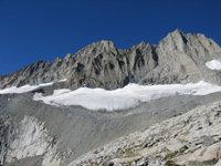able to avoid the sandy talus but faced continuing and relentless boulder hopping instead. Middle Palisade's east face looked pretty intimidating the closer we got, and we were not yet able to make out